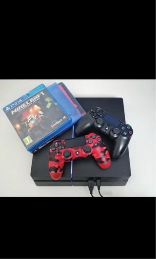Consola PlayStation 4 con accesorios y juego. - Incluye dos mandos. - Incluye el juego Minecraft, fifa 20 y gta5