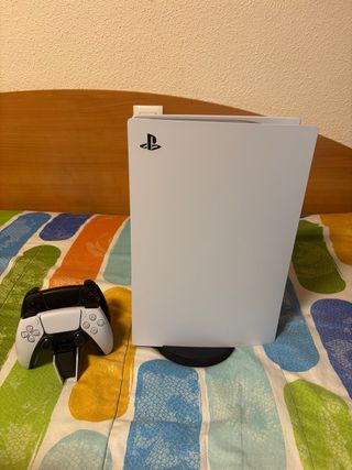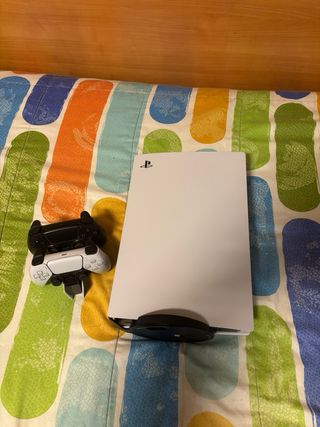 Consola PlayStation 5 en color blanco, con soporte vertical y dos (2)mandos DualSense. - Incluye los juegos FIFA 23 y MLB The Show. - Dos mandos. - Base de disipación del calor multifuncional valorada en 50€. - Caja original de la consola Todo en perfecto estado. Practicamente nuevo. La vendo porque no dispongo de tiempo para jugar.