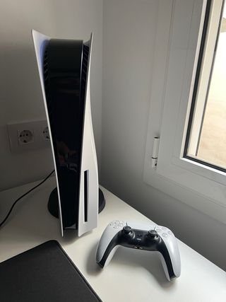 Consola PlayStation 5 Slim Digital Edition en color blanco, prácticamente sin uso. Se entrega con su caja original. - Incluye mando, con pequeñas manchitas, que no he conseguido quitarlas