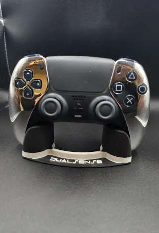 Soporte de diseño moderno para tu mando de PlayStation 5. Fabricado en Pla con acabado cepillado y detalles en negro. - Diseño elegante con logo de PlayStation. - Material: Pla.