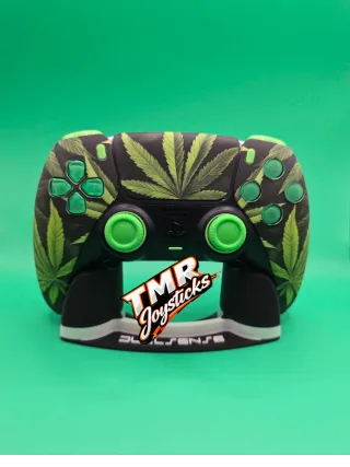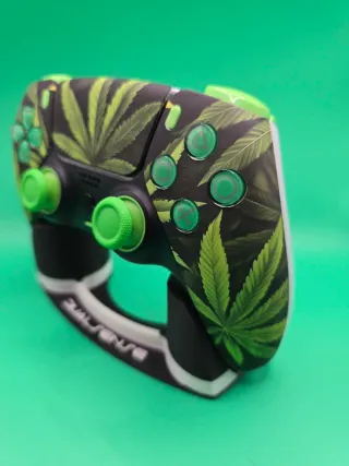 Mando de PlayStation 5 Dualsense con un diseño único. - Joysticks TMR - Diseño personalizado con hojas verdes. - Botones y joysticks en color verde brillante. ♻️♻️ Plan renove 20€ de descuento al traer tu viejo mando con drift.