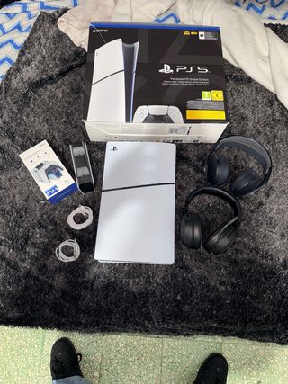 PlayStation 5 Digital Edition – en perfecto funcionamiento Vendo PlayStation 5 Digital en muy buen estado. La consola funciona perfectamente, sin fallos ni problemas de rendimiento. Siempre usada con cuidado y en un entorno limpio. Se entrega con: • Cable de alimentación • cable de carga + Mando Ideal si buscas una PS5 Digital a buen precio.