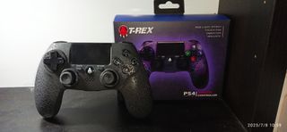 Mando inalámbrico T-REX para PlayStation 4 en buenas condiciones. Tiene un diseño elegante con textura. - Incorpora retroiluminación RGB. - Incluye función de vibración. - Touchpad funcional.