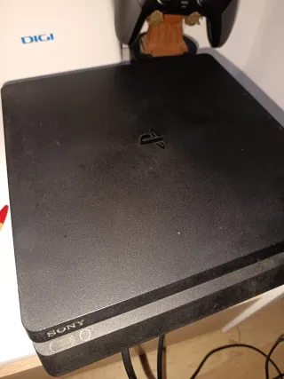 Consola PlayStation 4 Slim de 1TB en color negro. Incluye dos mandos inalámbricos no originales pero funcionan muy bien En juegos más potentes el ventilador se oye mucho pero no influye en la jugabilidad - Capacidad de almacenamiento de 1TB. - Diseño Slim y elegante. - Dos mandos para jugar con amigos.