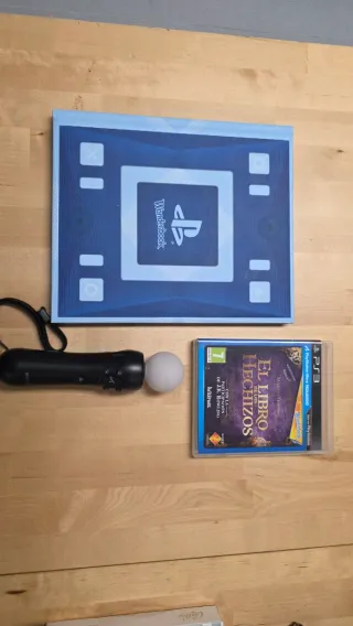 Lote de accesorios para PlayStation 3. - Incluye mando PlayStation Move. - Incluye juego Il Libro Incantesimi para PS3. - Incluye alfombrilla Wonderbook para PS3. - Incluye cámara PlayStation Eye. - Incluye disco de juego adicional. -Cable de carga.