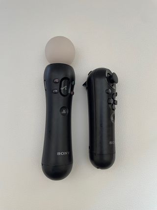 - Mandos play station move (motion controller y navigation controller) - Base de carga para los mandos - Cables originales para la base de carga - Disco con demos jugables - Correa original de mando - Caja original del mando y la base Original para ps3 pero compatible con ps4.