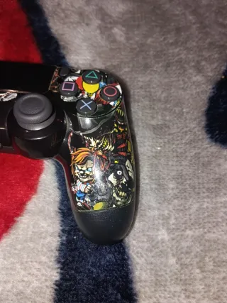 Mando de PlayStation 4 con skin. - Diseño ergonómico. - Botones de acción y direccionales. - Panel táctil. - Conexión inalámbrica. Mando en perfecto estado estético y de usabilidad. Tengo 2 más, uno rojo y otro con skin. Pregúntame por el precio del pack.