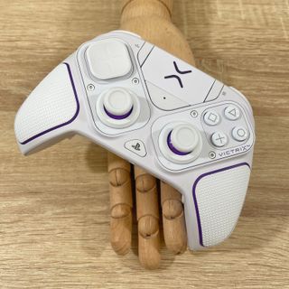 Mando profesional para PlayStation 5 con diseño personalizable. - Botones traseros intercambiables. - Sticks analógicos reemplazables. - Gatillos ajustables. El mando se vende tal cual en las fotos y no viene con ningún accessorios! Funciona perfectamente y no tiene drift!