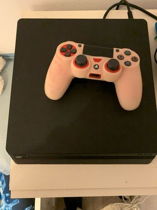 PlayStation 4 en perfecto estado, lista para usar. Incluye dos mandos: uno estándar y otro con diseño personalizado. - Consola en excelentes condiciones. - Dos mandos incluidos. - Un mando es un modelo estándar y el otro tiene un diseño personalizado.