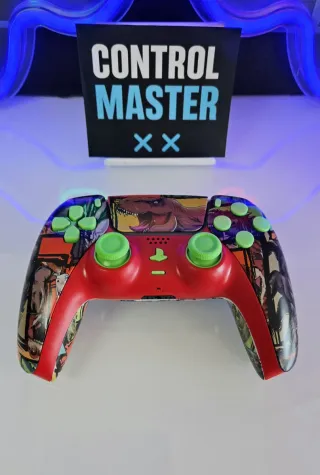 Mando de PlayStation 5 con un diseño único y llamativo. ControlMaster. - Carcasa personalizada en Hidrografía con temática de dinosaurios. - Acabado mate.