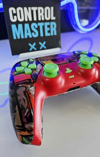 Mando de PlayStation 5 con un diseño único inspirado en Mario y Donkey Kong. - Joysticks Magnéticos TMR Ksilver - Diseño personalizado con personajes de Nintendo. - Color base rojo.