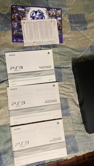 Consola PlayStation 3 Slim en color negro. Modelo CECH-2004A. Estado impecable. Se ha utilizado muy poco pero funciona perfectamente. No hay otra igual en todo Wallapop. SE INCLUYEN TODOS LOS JUEGOS DE LA ÚLTIMA FOTO. - Incluye dos mandos DualShock 3 - Cables de conexión y alimentación. - Manuales y caja original.