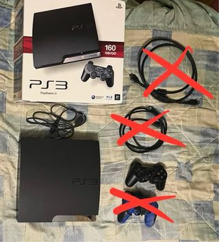 Ps3 Slim 160 Gb. Consola en perfecto estado y funciona perfectamente. Sin HDMI. Mando original dañado y sin cable. Se entrega con caja original.