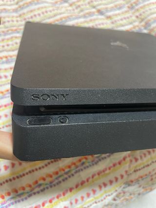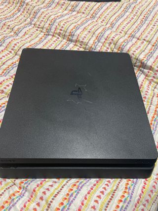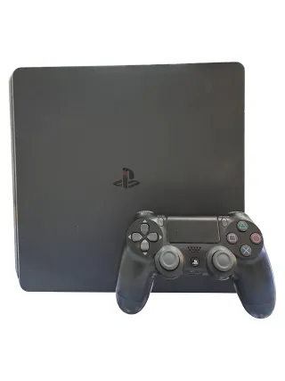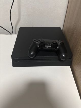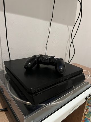 Consola PlayStation 4 Slim en color negro, con un mando incluido. Se encuentra en muy buenas condiciones.