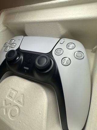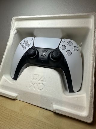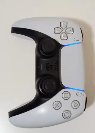 Mando inalámbrico para PlayStation 5. Lo vendo porque no lo uso* - Oficial de Sony/PlayStation. - Panel táctil(correcto) -Vibración(correcta) - Barra de luz LED(correcto) -Botones funcionales(correcto) -gatillos adaptables(correcto) -microfono y altavoz del mando(correcto) -Joystick izquierdo(correcto) -Joysitick derecho(drift muy ligero) -nunca abierto( no modificado) Dos mandos blancos por 90