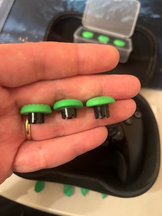 Conjunto de piezas de repuesto para mando de PS5. - Incluye tapas de joystick y botones. - Colores: verde, rojo y negro. Botones L1 R2 Separado 2 euros Los colores 3 euros