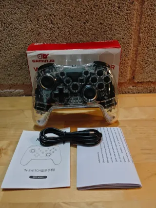 Vendo joypad Gaminja modelo NS015, completamente nuevo, sin usar. Incluye instrucciones y cable de carga. Ideal para gamers que buscan estilo y funcionalidad. Características destacadas: - Diseño transparente que deja ver el interior del mando - Iluminación LED personalizable: cambia de color y efecto a tu gusto - Compatible con: - Nintendo Switch (modelos 1 y 2) - PC - Android (TV Box, móviles) - PS3 - Conectividad Bluetooth e inalámbrica, con vibración dual y sensor de 6 ejes para una experiencia inmersiva - Excelente ergonomía y respuesta de botones