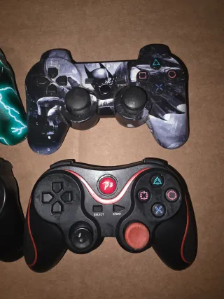 Lote de cuatro mandos para PlayStation 3. - Diseño negro con detalles en rojo y negro. - Diseño negro con relámpagos verdes. - Diseño negro con calaveras y Batman. - Diseño negro con detalles en rojo. Estan como se ven en las fotos no se si funcionan no tengo como probarles. (ESCUCHO OFERTAS)