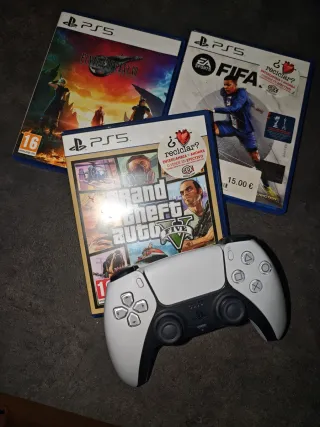 Pack de videojuegos para PlayStation 5 junto con un mando DualSense. - Juegos incluidos: Final Fantasy VII Remake, EA Sports FIFA, Grand Theft Auto V. - Mando inalámbrico DualSense. - Compatible con PS5.