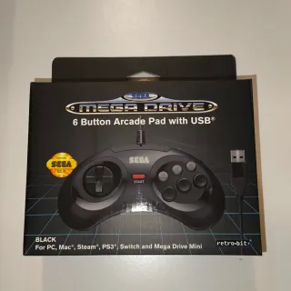 Nuevo. Mando de 6 botones para Mega Drive con conexión USB. Compatible con PC, Mac, Steam, PS3, Switch y Mega Drive Mini. - Diseño clásico en color negro. - Incluye cable USB.