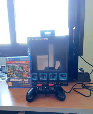 Vendo mi PlayStation 4 Fat de 1 TB en perfecto estado. Es la versión con 1 TB de almacenamiento, lo que significa que tendrás espacio de sobra para descargar decenas de juegos sin preocuparte por el espacio. Ha sido cuidada al detalle, con muy poco uso y siempre en un ambiente limpio. ¿Qué incluye el lote? Consola PS4 Fat (1 TB de disco duro): Perfecta, silenciosa y lista para disfrutar. 1 Mando DualShock 4 Original: En excelente estado. Todos los cables necesarios: Cable de alimentación y cable HDMI 1 Juego de Uncharted The Nathan Drake Collection No se incluye battelfront 1 base de refrigeración con cargador de 2 mandos