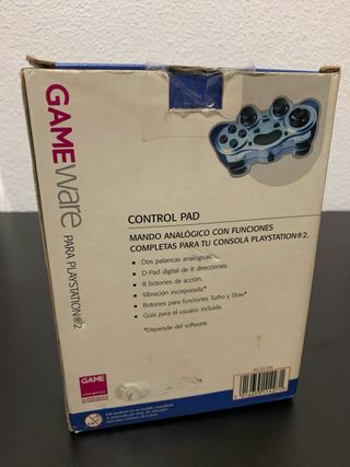 Mando de control para PlayStation 2 de la marca Gameware. Color azul metálico. - Dos palancas analógicas. - Vibración incorporada. - Botones para funciones Turbo y Slow.