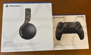 Pack de accesorios para PlayStation PS5. - Auriculares gaming - Sony Wireless Pulse 3D™, 12 h autonomía, PS5 y PS4, Gris camuflaje. - Mando PS5 SONY DualSense Grey Camouflage (Inalámbrico). Comprados hace unos meses por 115€ y 75€, vengo porque no los usamos. Entrego con cajas, manuales y demas. Practicamente sin uso, como nuevos. Precio pack: 150€ Auriculares sueltos: 95€ Mando suelto: 65€