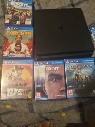 PS4 slim impoluta ,apenas usada un par de horas a la semana Se incluyen estos juegos F1 23 Crash nitro (el similar al Mario kart) Project cars 2 Dragon ball XenoVerse 2 Fifa 20 Dragón ball Z fighters Mando ,totalmente funcional Preferible trato en mano