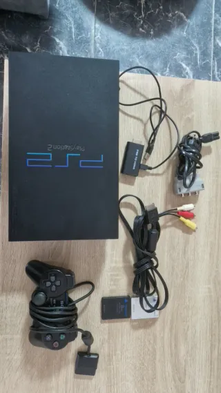 Se vende consola Playstation 2 en color negro, junto con 16 videojuegos y una esterilla de baile. - Incluye todos los cables necesarios para su conexión. -Incluye cable adaptador para conectarla por hdmi. - Incluye un mando. - Incluye 2 tarjetas de memoria. No se hacen envios.