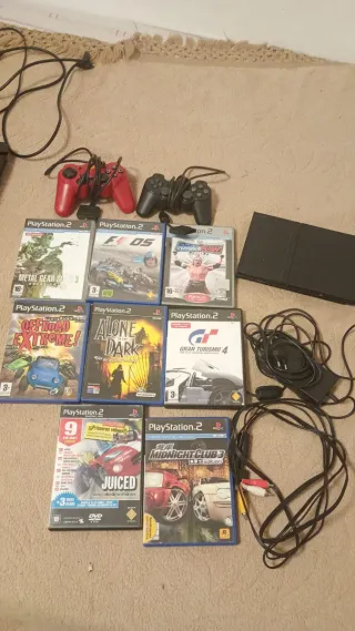 Se vende consola PlayStation 2 con dos mandos, uno rojo y otro negro. Incluye varios videojuegos. - Metal Gear Solid 3 - F1 05 - SmackDown! Here Comes The Pain - Offroad Extreme! - Alone in the Dark - Gran Turismo 4 - Juiced - Midnight Club 3: Dub Edition
