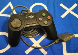 Mando antiguo de control para consolas PlayStation de la marca Gamemaster, funcionan correctamente todos sus botones. - Diseño ergonómico para mayor comodidad. - Botones de acción y direccionales. - Cable de conexión.