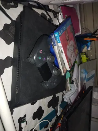 Consola PlayStation 4 de 500g 10 video juegos 2 mandos. 10/10 2 gomas para los mandos a estrenar Cable hdmi Cable carga y juega Cable de poder Solo se vende todo junto. Todo en excelente estado 10 de 10 Solo trato en mano.