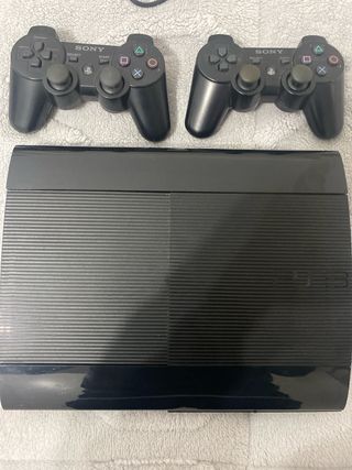 Consola PlayStation 3 en color negro, con dos mandos DualShock 3. - Incluye dos mandos inalámbricos. - Diseño elegante en negro.
