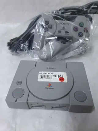 Consola clásica PlayStation 1 Mini en color gris. Un diseño compacto y retro. - Incluye mando. - Cableado.