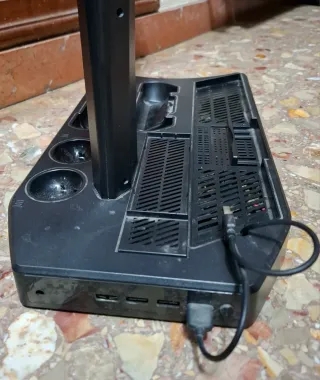 Base, soporte, para la PLAYSTATION 4, PS4, y las gafas de Realidad Virtual RV. Lleva varios puertos USB, alojamiento para la PS4, para el modulo de RV, para cargar 2 mandos convencionales y 2 de movimiento y para las gafas RV. Lleva tambien ventilacion para la consola. En perfecto estado. Marca ELECGEAR, modelo EL-005. Lo de las fotos. Mira mis otros articulos para ahorrar. Combino envios.