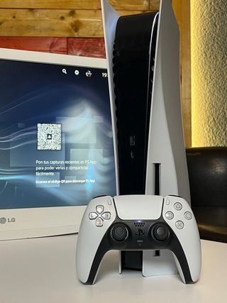 Consola de videojuegos PlayStation 5 con lector de discos. - Diseño elegante en color negro y plateado. - Incluye mando y cables. -Muy bonita, tapas negras originales. Perfil: ⭐⭐⭐⭐⭐️️️️️