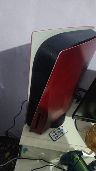 Consola Playstation 5 en buen estado. -hecho el mantenimiento y la limpieza hace 4 meses y todo esta perfecto . - Diseño moderno con acabados en negro y rojo. - Incluye mando y cables.