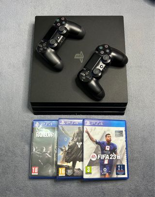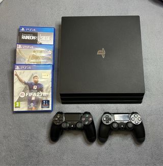 Vendo PS4 Pro de 1TB de almacenamiento, esta en perfecto estado y funcionamiento. Es muy silenciosa y nunca ha sido abierta. La entrego con sus cables y 2 mandos oficiales, uno funciona bien y el otro está un poco defectuoso, solo va con cable. De regalo 1 juego a elegir. La dejo por 135€ NO negociable. Se puede ver y probar en Valencia, no hago envíos. *Tengo mas juegos en mi perfil* Tag:PS5/XBOX/NES/Switch2/iPhone17/PS4/Xiaomi/FC26/GTAV/Pokemon/AirPodsPro.