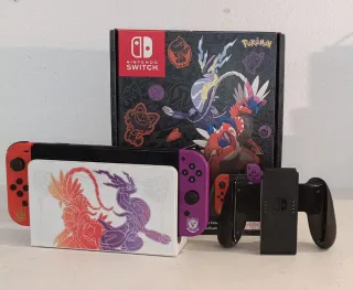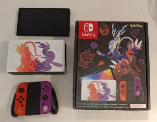 Vendo la Nintendo Switch edicion especial de Pokemon Escarlata y Purpura. En perfecto estado, sin apenas uso. Incluye caja original, estación para conenctarla al televisor, mandos originales y el aparato para unir los mandos en un pad. Cualquier duda por privado. Solo venta en persona, dado el valor del producto. No incluye tarjeta microSD. -------- Nintendo, consolas, gaming, pokemon, mario, zelda, donkey, yoshi, videojuego.