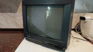 Televisión color de estado sólido con mando a distancia. Diseño retro, para videoconsolas vintage.