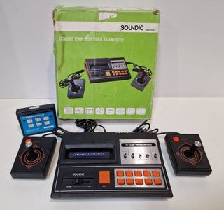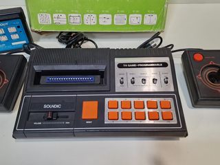 VÍDEO CONSOLA SD 070 COLOR PROGRAMMABLE TV-GAME DE SOUNDIC años 80. En muy buen estado, con dos mando y casete de juego, NO ha sido probada. Caja en estado regular. Mire atentamente las fotografías, estas forman parte de la descripción, si tiene alguna duda preguntenos.