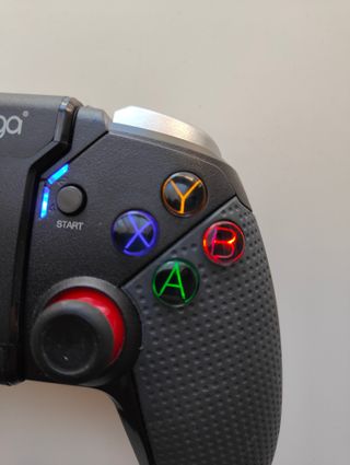 Mando para juegos compatible con Android, iOS, PC, Smart TV, etc. -Conexión Bluetooth -Soporte integrado para el móvil -Doble motor de vibración -Botones retro-iluminados