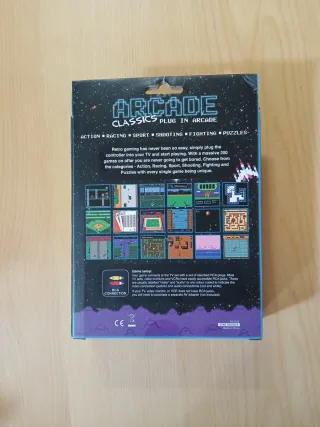 Consola de videojuegos Arcade Classics con 200 juegos integrados. Diseñada para conectar y jugar directamente a la televisión. - Incluye mando de control. - Conexión Plug & Play.