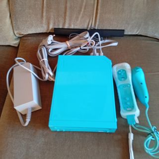 Consola de videojuegos Nintendo Wii en color azul. - Incluye consola. - Incluye mando Wii Remote y Nunchuk. - Incluye sensor bar. - Incluye adaptador de corriente.