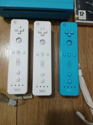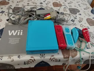 Consola Nintendo Wii en color azul, lista para jugar. Incluye todos los accesorios necesarios para empezar. - Consola Wii - Mando Wii Remote - Nunchuk - Adaptador de corriente - Cable de conexión - Antena Con juegos varia el precio dependiendo de los que se quiera. Lista de juegos: Súper Mario Bros.WII Just dance 2018 WII sport resort resort WII party Don king (EL BOXEO) INAZUMA ELEVEN STRIKERS Mario parte 9 Call of duty Phineas y fer a través de la segunda dimensión