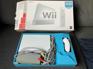 Wii en perfecto estado. Funciona perfectamente y tiene todos sus cables mas dos mandos, fundas, un volante y un mando como el de la súper nintendo. Incluye funda azul para guardarla y 9 juegos: 1. Super mario bross 2. Mario kart 3. Donkey kong country returns 4. Los Sims Naufragos 5. wii sports 6. Tigwe Woods PGA Tour 10 7. WiiPlay 8. Rayman Raving rabbids 9. Trivial Pursuit