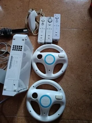 Vendo consola Nintendo Wii en perfecto estado, incluye todo el cableado original. -Consola Nintendo Wii -3 mandos Wii Remote -2 accesorios tipo joystick (Nunchuk) -Dos volantes Todo el cableado necesario (alimentación, sensor y cables de conexión) Juegos incluidos (se pueden vender por separado): -Wii Play -Call of Duty: Black Ops -Star Wars: Duelo de Sables de Luz -Wii Sports