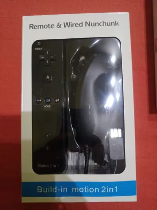 Controlador de movimiento para Wii y su accesorio Nunchuk. TODO ORIGINAL DE NINTENDO. - Mando principal con botones direccionales, A, B, +, -, Home, Power y 1, 2. - Nunchuk con joystick y dos botones.