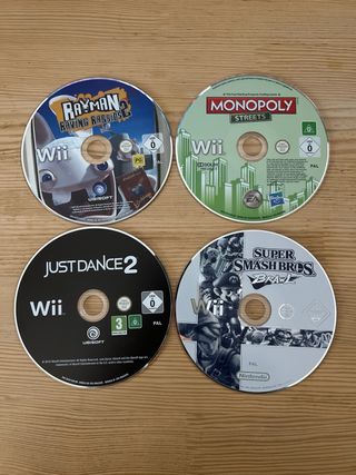 Pack Nintendo Wii en color negro. - Incluye consola Wii. - Mando Wii Remote y Nunchuk. - Adaptador de corriente. - Barra sensor de movimiento - Cables de conexión AV - El adaptador HDMI lo regalo. 4 juegos: * Rayman Raving Rabbids 2 * Monopoly * Super Smash Bros * Just Dance 2