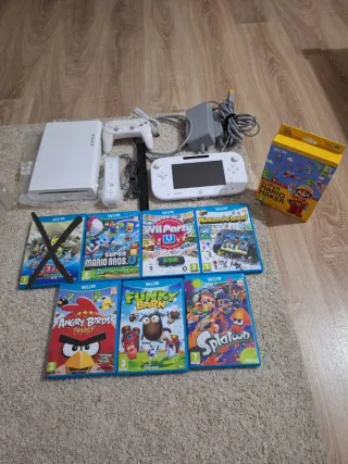 Consola Nintendo Wii U en color blanco, junto con varios juegos. - Incluye consola Wii U. Sin caja 📦 con todos sus cables de corriente hdmi.... - Mando Wii U. - Mando Pro Controller. - Juegos: Super Mario Bros. U, Wii Party U, Nintendo Land, Super Mario Maker edición coleccionista, Angry Birds Trilogy, Funky Barn, Splatoon. Todos los juegos pal españa son en español las caraturas Todo en muy buen estado sin apenas uso. El zelda ya está vendido COLECCION PERSONAL.
